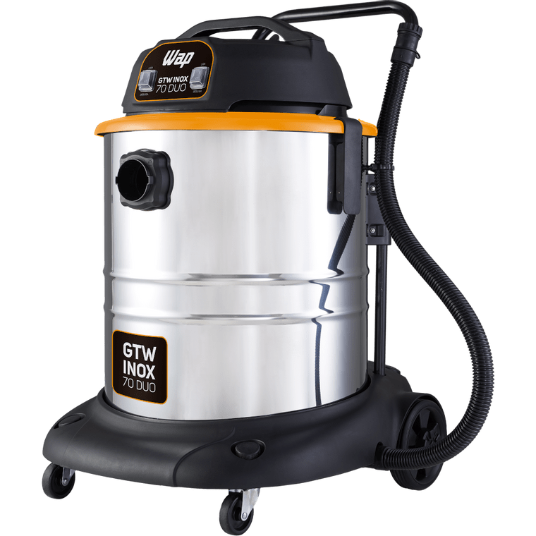 Com capacidade para 70 litros em recipiente inox, proporciona maior resistência em um lindo design. O Aspirador WAP GTW INOX 70 DUO é o mais indicado para trabalhos pesados em comércios como, lava cars, indústrias e pós obras, recolhendo com eficiência todos os resíduos.
